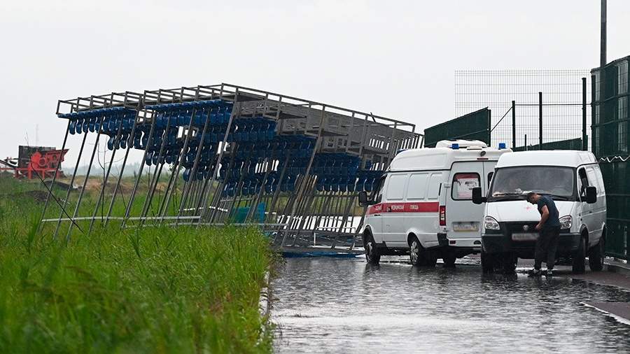 Сообщение об обрушении трибуны на улице Пойменной в Ростове-на-Дону поступило в МЧС РФ в 16:25 во вторник, 30 мая. Известно, что группа с детьми пряталась от дождя под навесом, где у них проходили соревнования. Трибуны не выдержали сильного ветра и перевернулись.