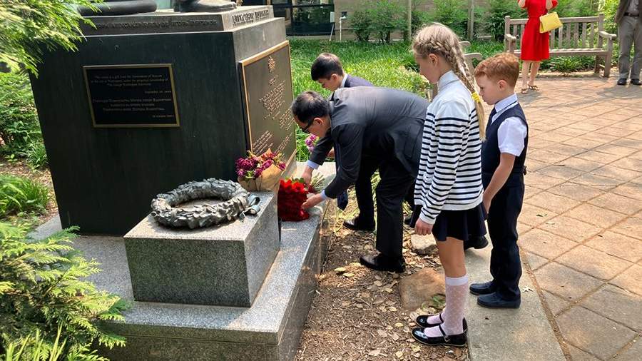 В церемонии, состоявшейся на территории студенческого городка Университета Джорджа Вашингтона, также участвовали представители Россотрудничества, российские журналисты и учащиеся школы при посольстве РФ. После возложения цветов школьники прочитали несколько стихотворений поэта.