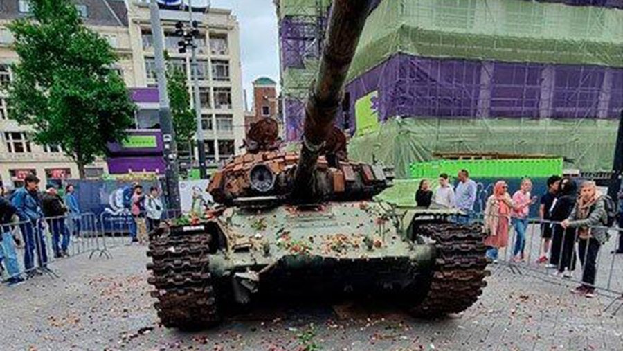 25 мая на Лейденской площади в Амстердаме прошла акция протеста в связи с установкой ранее выставлявшегося в Берлине танка Т-72, который якобы был поврежден в ходе боевых действий на Украине. Участники мероприятия попытались возложить к машине цветы в память о погибших в украинском конфликте людей, а также призвали европейские страны прекратить поставлять оружие Украине.