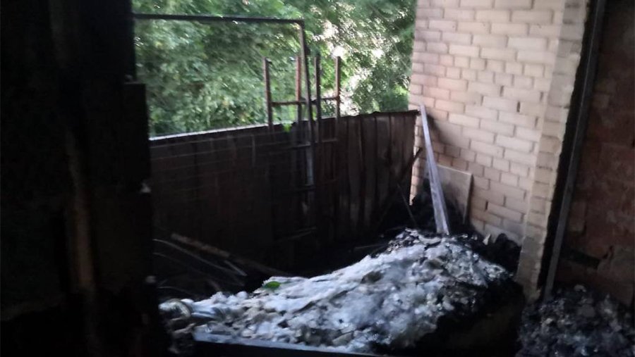 В распоряжении «Известий» появились кадры последствий возгорания. На них видно, что некоторые комнаты в квартире полностью выгорели. Огонь также опалил стены подъезда.