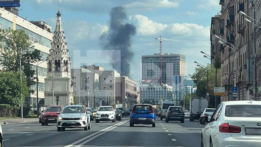 Пожар произошел в районе Миусской площади в центре Москвы вечером в воскресенье, 18 июня. Очевидцы делятся кадрами с поднимающимся столбом густого черного дыма в социальных сетях.