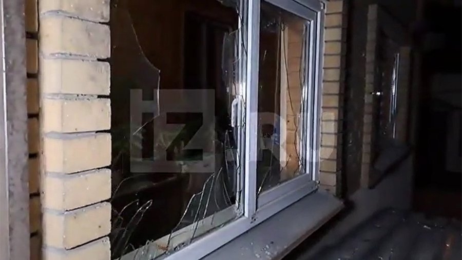 На видео можно рассмотреть, как разбиты стекла окон в доме, осколками посечены и пробиты насквозь железная дверь и ворота, разрушены кирпичные стены, поврежден бетонный столб.