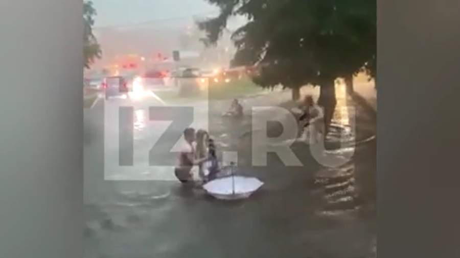 Как видно на кадрах, пешеходы оказались практически по пояс в воде из-за затопления. От удара никто не пострадал.