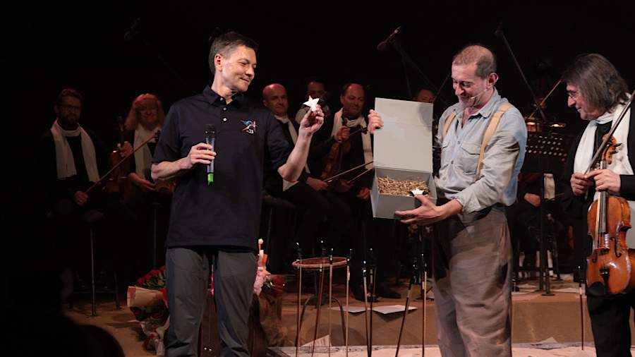 Хабенский передал символ МХТ в качестве индикатора невесомости экипажу «Союз МС-24»