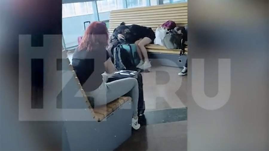 На видеокадрах, имеющихся в распоряжении «Известий», видно, как дети спят на вокзале на своих сумках и рюкзаках.