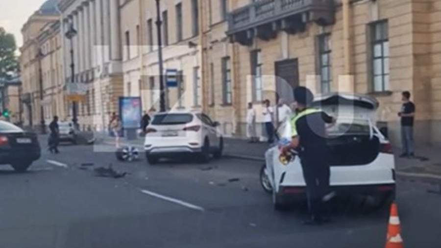 Не менее пяти автомобилей были повреждены в результате столкновения в Санкт-Петербурге. В распоряжении «Известий» 17 июля появились кадры с места происшествия.