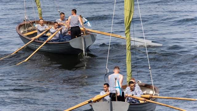 Группа малых противолодочных кораблей открыла парад в Кронштадте. Здесь в торжественной церемонии приняли участие МРК «Одинцово» и «Мытищи» проекта 22800, «Град» проекта 21631, корвет «Бойкий», фрегат «Адмирал Горшков», большой противолодочный корабль «Вице-адмирал Кулаков», подводный атомный крейсер «Северодвинск», корветы проекта 20380 «Стойкий» и «Сообразительный», большой десантный корабль «Иван Грен», большой противолодочный корабль «Североморск» и пограничный сторожевой корабль «Сочи». Завершила эту часть парада подводная лодка «Уфа» проекта 636.3.
