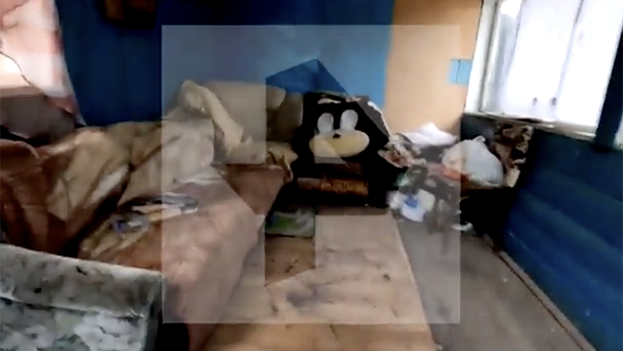 Как следует из видео, деревянный дом выглядит как нежилой. Однако на его окнах установлены металлические решетки. Вместо стекла некоторые оконные проемы закрыты полиэтиленом.