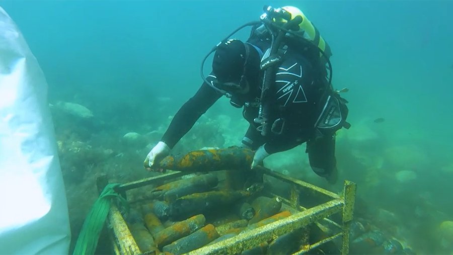«Были проведены работы по подъему и передаче взрывоопасных предметов в рамках проводимых работ по мониторингу и предупреждению подводных и потенциально опасных объектов в бухте Гильзовая. Всего за сегодня поднято на поверхность для дальнейшего уничтожения 805 единиц различных боеприпасов Великой Отечественной войны. С мая было обследовано более 2 га акватории. Работы продлятся до 31 октября», — сообщил начальник специализированного отряда главного управления МЧС России по городу Севастополю Николай Тисельский.