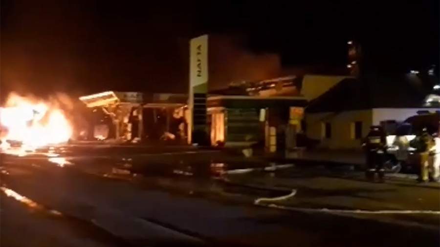 В Сети появились кадры момента взрыва на АЗС. На них видно, что в результате взрыва разбились стекла автомобилей, находившихся рядом.