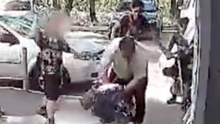 На записи с камер наблюдения видно, что мужчина ударил по голове ребенка, когда тот сидел, отвернувшись от него. После этого мальчик попытался дать сдачи, но тренер повалил его на тротуар и избил.