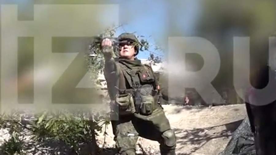 Во время съемки раздался хлопок, один из бойцов рассказал, что на отряд скинули снаряд.