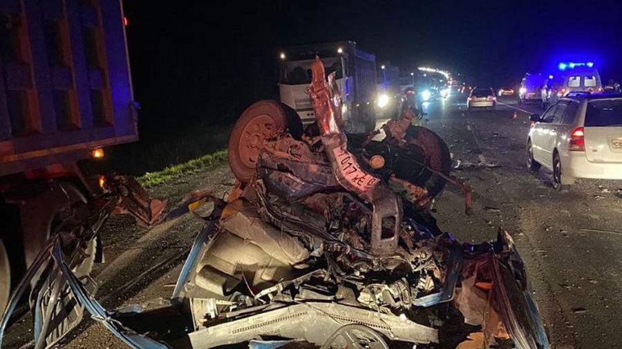 По предварительным данным, авария произошла из-за того, что водитель одного автомобиля наехал на стоящий на обочине грузовик, а затем выехал на полосу встречного движения, где столкнулся с третьим автомобилем.
