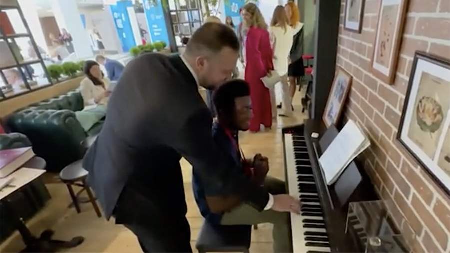 Корреспондент «Известий» научил африканца играть гимн России на ВЭФ