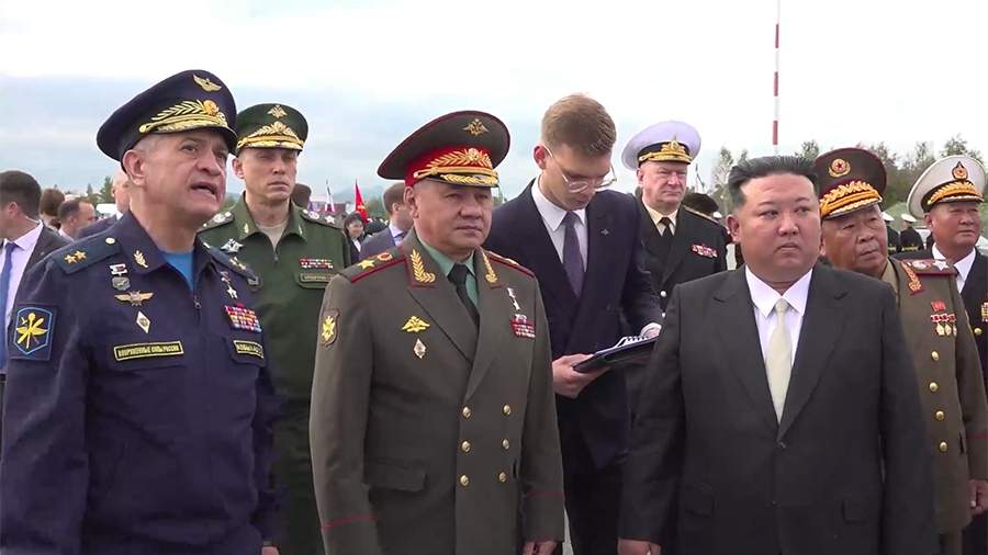 Лидер КНДР Ким Чен Ын в субботу, 16 сентября, посетил аэродром Кневичи во Владивостоке, где его встретил глава Минобороны РФ Сергей Шойгу.