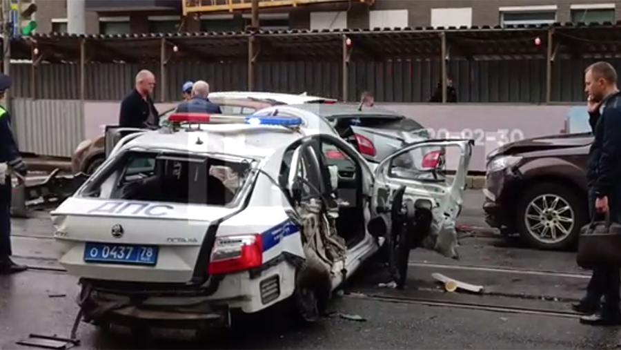 В Санкт-Петербурге произошло массовое ДТП с участием машины ДПС