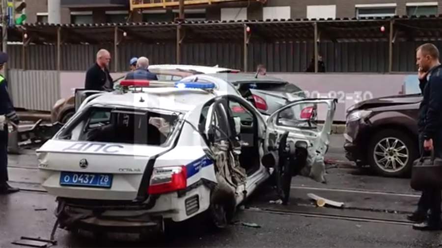 В Санкт-Петербурге произошла массовая авария с участием машины дорожно-патрульной службы (ДПС). Об этом 21 сентября рассказал источник «Известий».
