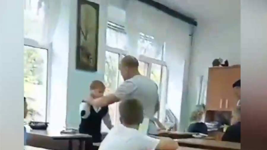 На видео показано, что учитель физкультуры избивает ребенка, нанося ему удары по голове. После происшествия педагог извинился перед школьником и его родителями.