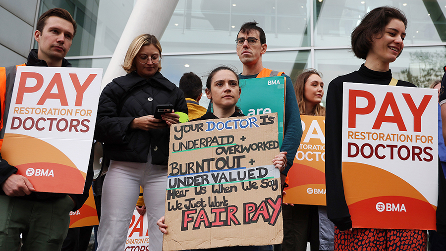 Десятки тысяч английских врачей-консультантов и врачей-интернов, которые получают в год менее 130 тыс. фунтов стерлингов, устроили трехдневную забастовку с требованием повысить оклады на фоне высокой инфляции. Об этом в понедельник, 2 октября, сообщает BBC News.