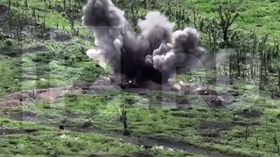 На представленных кадрах видно, что танки нанесли удары по опорным пунктам и укрытиям украинских боевиков.