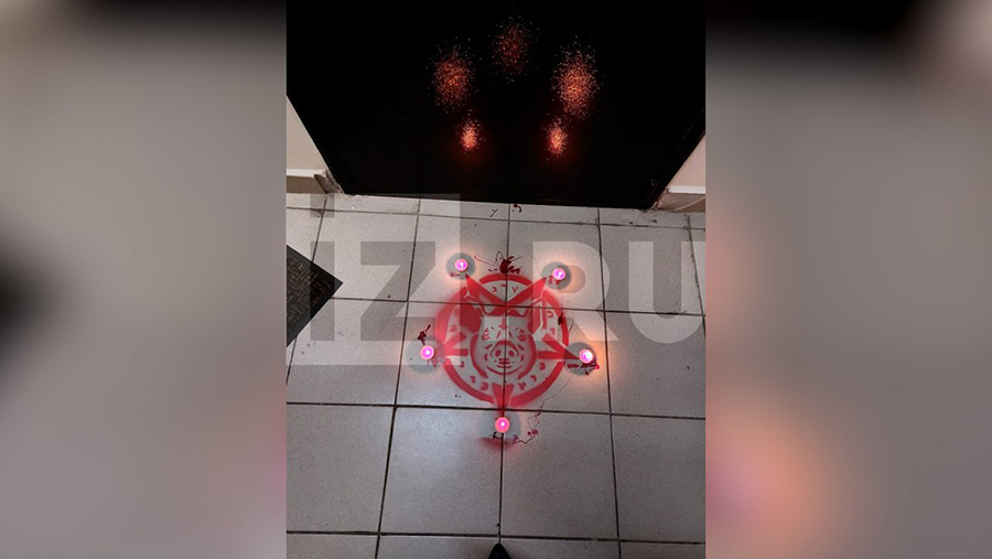 Инцидент произошел ранее в этот день. Неизвестные нарисовали пентаграмму со свиной головой и расставили свечи около двери квартиры Трушнина. Электрик, работающий в доме, сообщил, что его попросили его вызвать дворника, чтобы тот убрал предметы.