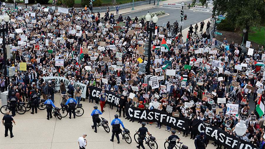 В рамках антивоенного протеста в поддержку Палестины на улицы Вашингтона вышли 10 тыс. человек. Об этом сообщили в организации Jewish Voice for peace («Еврейский голос за мир») в соцсети X в четверг, 19 октября.