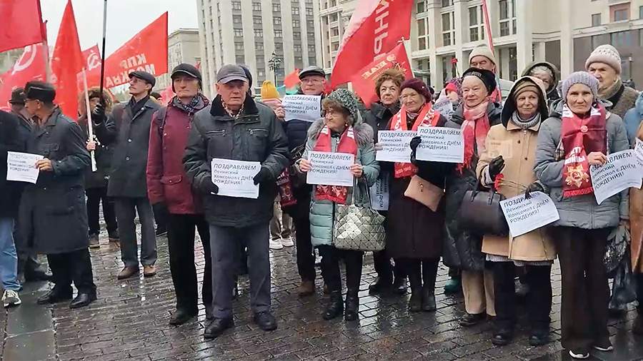 В Москве 28 октября на Манежной площади бывшие комсомольцы провели митинг в честь 105-й годовщины Ленинского комсомола, сообщают «Известия».