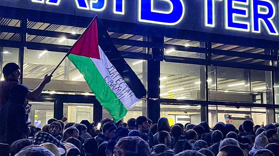 Ранее в этот день начались беспорядки у аэропорта Махачкалы с участием нескольких тысяч человек. Как отметил корреспондент «Известий» Мурад Магомедов, участники пришли с антиизраильскими плакатами и скандируют лозунги в поддержку Палестины. В какой-то момент часть толпы сломала входные двери и прорвалась в здание терминала аэропорта.