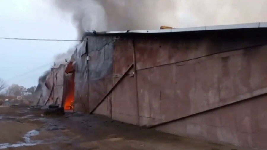«В поселке Степной горит склад на площади 3,5 кв. м. В тушении задействовано 45 специалистов и 14 единиц техники», — указано в Telegram-канале ведомства.