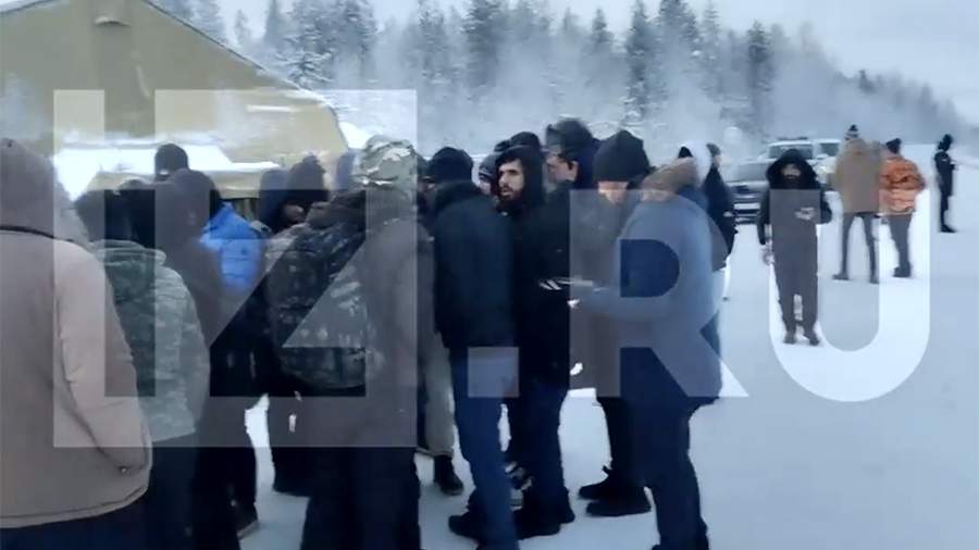 КПП находится вблизи поселка Алакуртти в Мурманской области. На кадрах видно, что в лагере находятся несколько десятков человек.