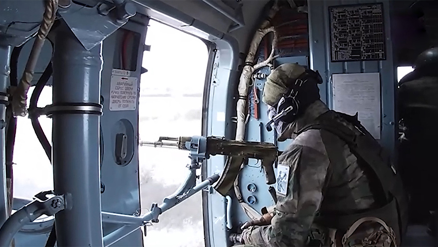 Специалисты поисково-спасательной группы (ПСГ) Воздушно-космических сил (ВКС) России на краснолиманском направлении ежедневно оказывают поддержку экипажам штурмовой и армейской авиации. Минобороны РФ 31 декабря показало фрагмент боевого полета группы на вертолете Ми-8.