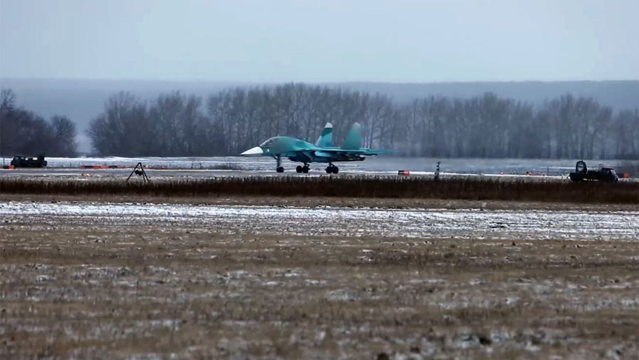 Экипажи многофункциональных сверхзвуковых истребителей-бомбардировщиков Су-34 Воздушно-космических сил (ВКС) РФ нанесли удар по укрепрайону и живой силе Вооруженных сил Украины (ВСУ) на краснолиманском направлении. Об этом 8 января сообщили в Минобороны РФ.