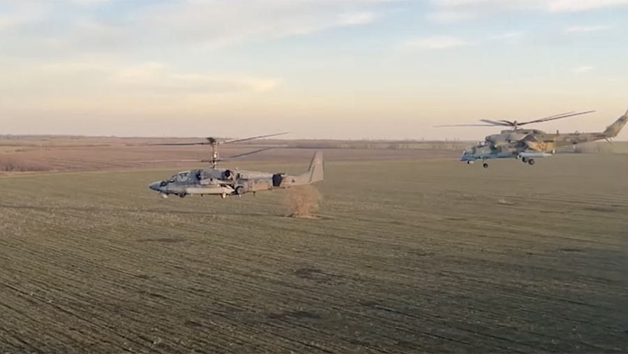28 декабря военное ведомство показало экипажи армейской авиации на вертолетах Ми-28Н, которые в составе ударной группы выпустили неуправляемые авиационные ракеты по опорным пунктам и солдатам ВСУ на донецком направлении.