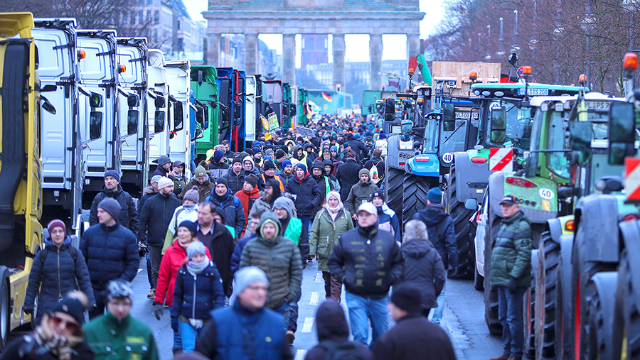 15 января в Берлине прошла массовая забастовка, организованная профсоюзом немецких фермеров. По подсчетам полиции, в акции приняли участие более 8,5 тыс. человек на 6 тыс. тракторов и другой сельхозтехнике. Неделя протестов аграриев стартовала 8 января.