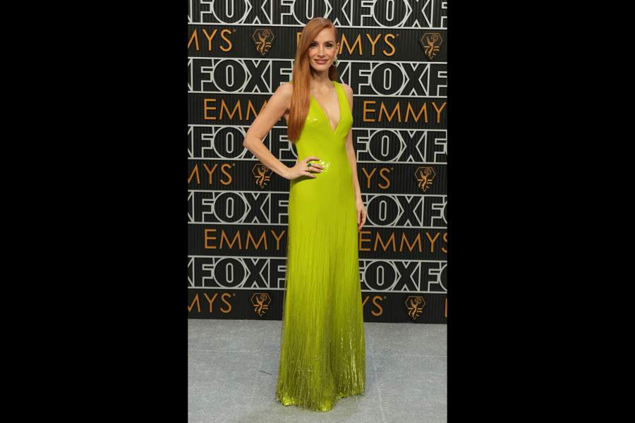 Джессика Честейн пришла на «Эмми» за исполнение главной роли в сериале «Удивительная миссис Мэйзел» в неоново-зеленом платье Gucci, но награды, увы, не получила. Актриса номинировалась на премию за лучшую женскую роль в мини-сериале или фильме за сериал «Джордж и Тэмми» о звездах кантри Джордже Джонсе и Тэмми Уайнетт