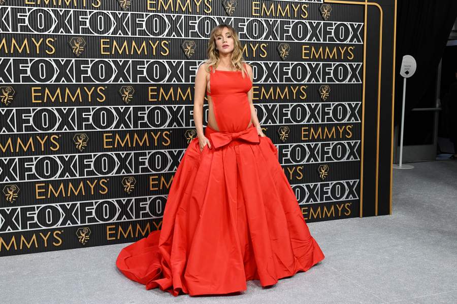 Ожидающая ребенка Сьюки Уотерхаус пришла на церемонию в открытом ярко-красном платье от Valentino