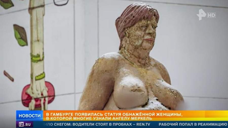 Статуя похожей на Меркель голой женщины в Гамбурге