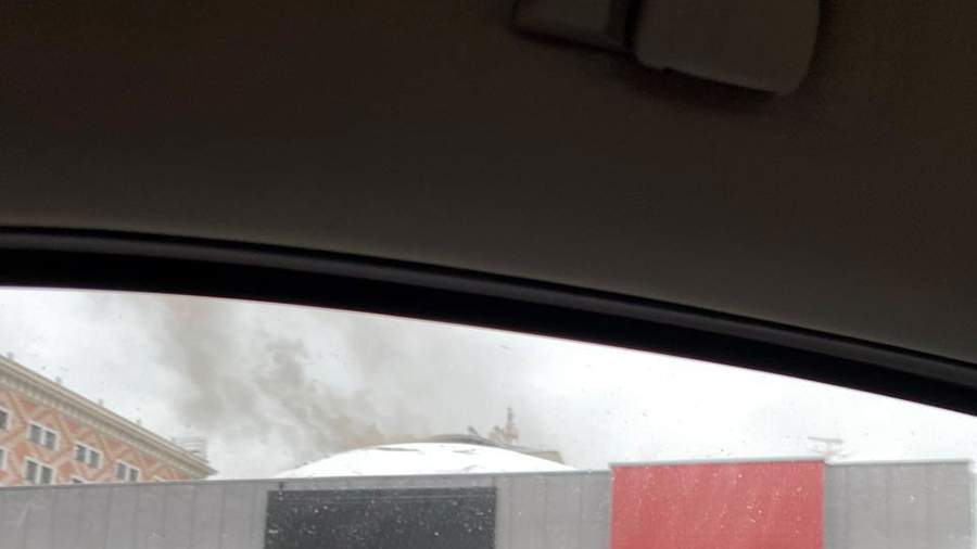 С крыши здания валит дым. По данным ГУ МЧС, пострадавших нет.