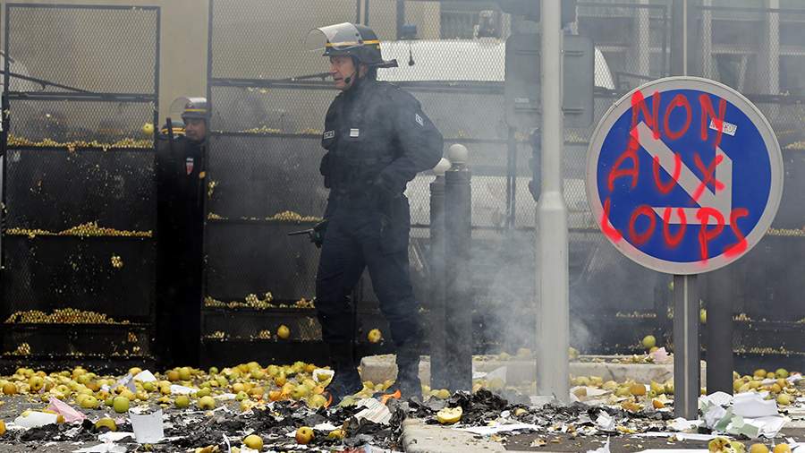 Бастующие фермеры во Франции угостили правоохранителей яблоками