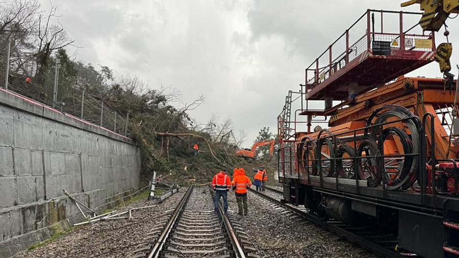 Специалисты уже убрали более 15,5 тыс. куб. м грунта. В компании отметили, что путь со стороны моря полностью очищен, в ближайшее время заменят поврежденную рельсошпальную решетку.