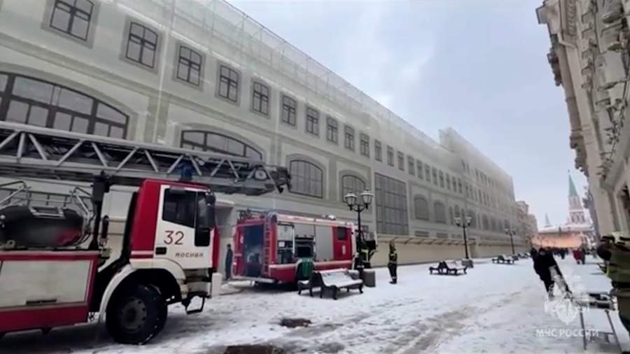 Пожар в здании рядом с Красной площадью в Москве