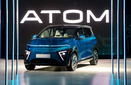 Электромобиль «Атом» впервые был представлен в мае 2023 года. Серийное производство планируется запустить в 2025 году на столичном заводе «Москвич». Электромобиль сможет разгоняться до 100 км/ч за семь секунд, запас хода на одном заряде составит около 500 км. Машина будет оснащена электродвигателем мощностью 150 кВт (204 л. с.), в длину электрокар достигает 3995 мм.