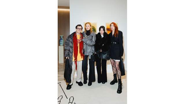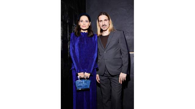 Экс-редактор российского Vogue Алена Долецкая выбрала для вечера сдержанный черно-белый образ, а солистка ГАБТ Анастасия Винокур остановилась на серой гамме. Старший научный сотрудник, хранитель ГМИИ имени Пушкина Алексей Петухов заглянул на огонек, облачившись в кардиган песочного цвета. Издатель Виктор Шкулев и директор по развитию Bosco di Cilegi Константин Андрикопулос тоже посетили вечер — в костюмах. На вечер заглянул и посол Японии Тоёхиса Кодзуки.