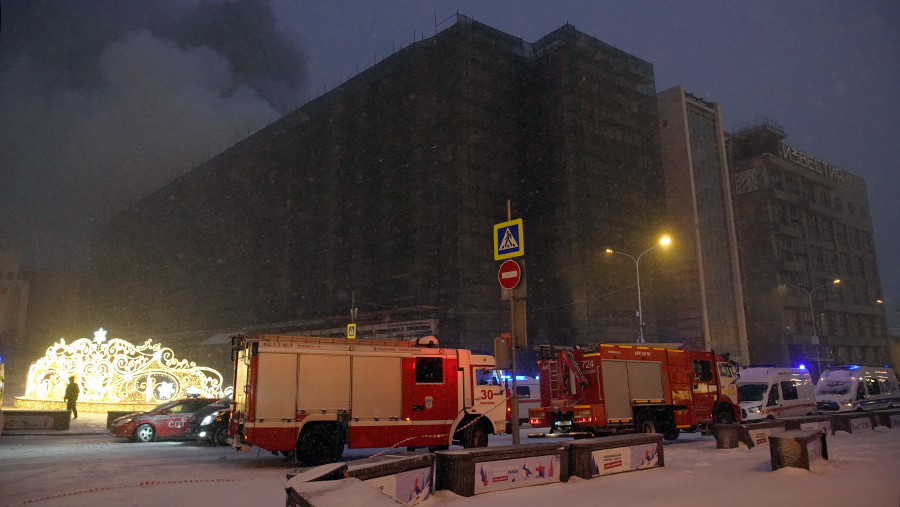 Купол обрушился внутри горящего в центре Москвы здания «Известия Холл»