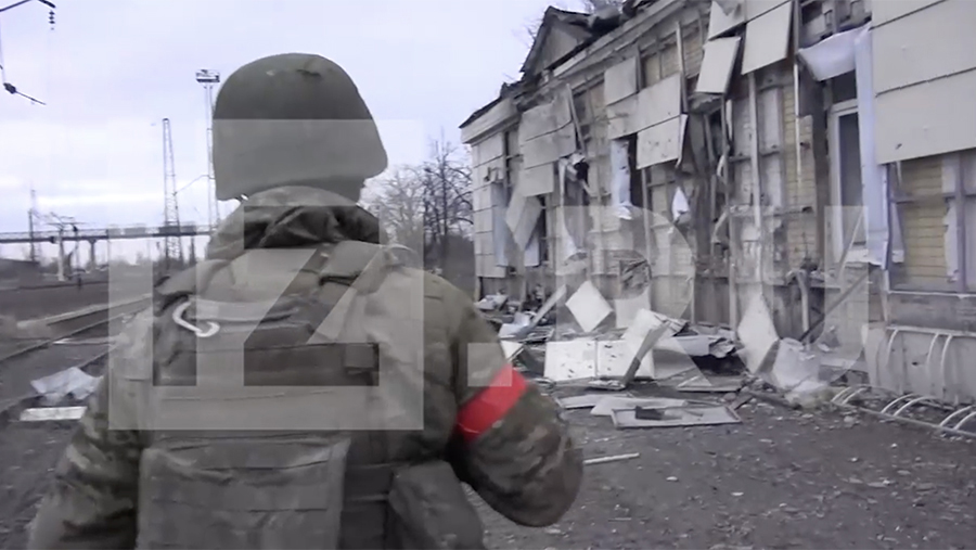 «Противник здесь держал оборону до конца и уходил за железную дорогу, в том направлении отступал. Также наши товарищи вели штурм по правому флангу, и тем самым мы их прижимали, брали в круговой», — поделился с Григорьевым один из военнослужащих ВС РФ.