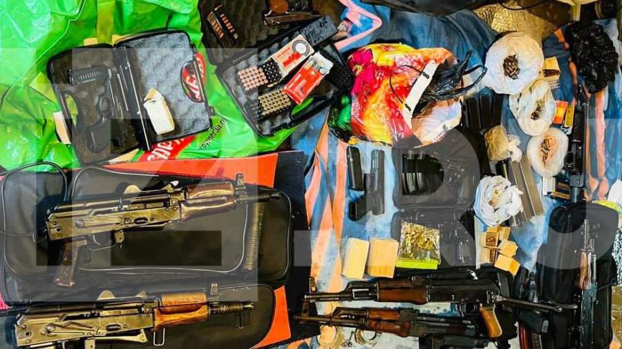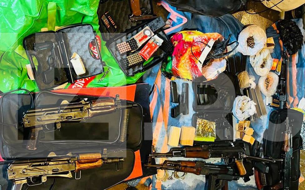 Отмечается, что схрон был обнаружен в гаражом кооперативе на Глухарской улице. Силовики нашли там снайперские винтовки, оптику к ним, пистолеты Макарова, револьвер, гранаты типа Ф-1 и другие, укороченные автоматы Калашникова, а также магазины с патронами, предварительно, с несколькими тысячами штук последних.