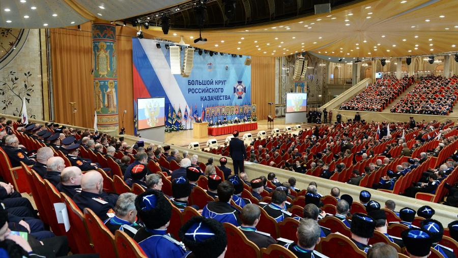 В Москве в среду, 28 февраля, открылся Большой круг российского казачества, участники которого заявили о поддержке политического курса президента РФ Владимира Путина. Мероприятие состоялось в Зале церковных соборов храма Христа Спасителя.