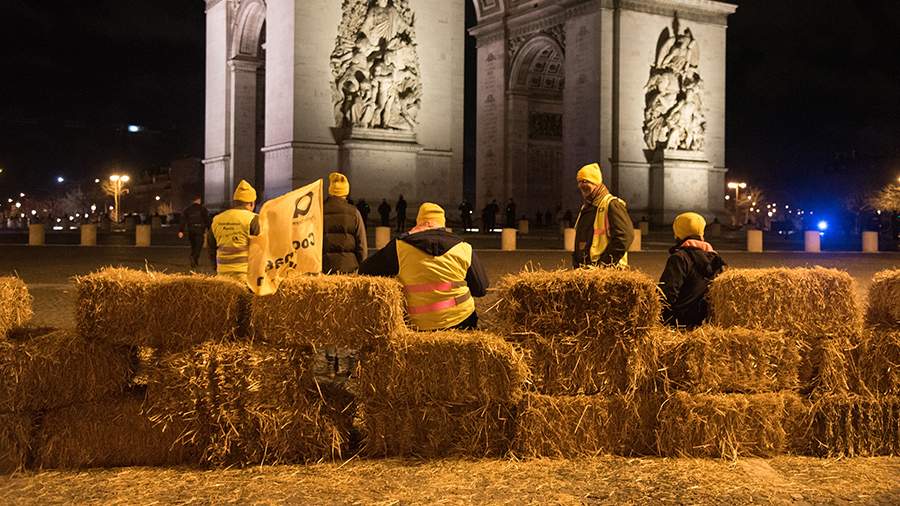 В Париже протестующие фермеры перекрыли тюками сена проезд к Триумфальной арке