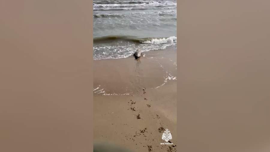Малыша тюленя спас сотрудник МЧС России в Дагестане