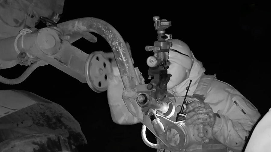 Под защитой темноты артиллеристы добрались до цели и нанесли удары осколочно-фугасными неуправляемыми реактивными ракетами. Ударная волна и осколки после таких боеприпасов, как рассказали в Минобороны, разлетаются на сотни метров, что гарантирует выполнение боевой задачи.